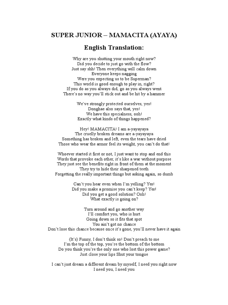 Lirik Lagu Mamacita Super Junior Romanized English Translate Pinkminmi