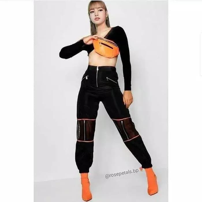 Celana Lisa Blackpink Korea K Pop Dance Joger Zipper Training Pant Kpop Shopee Indonesia